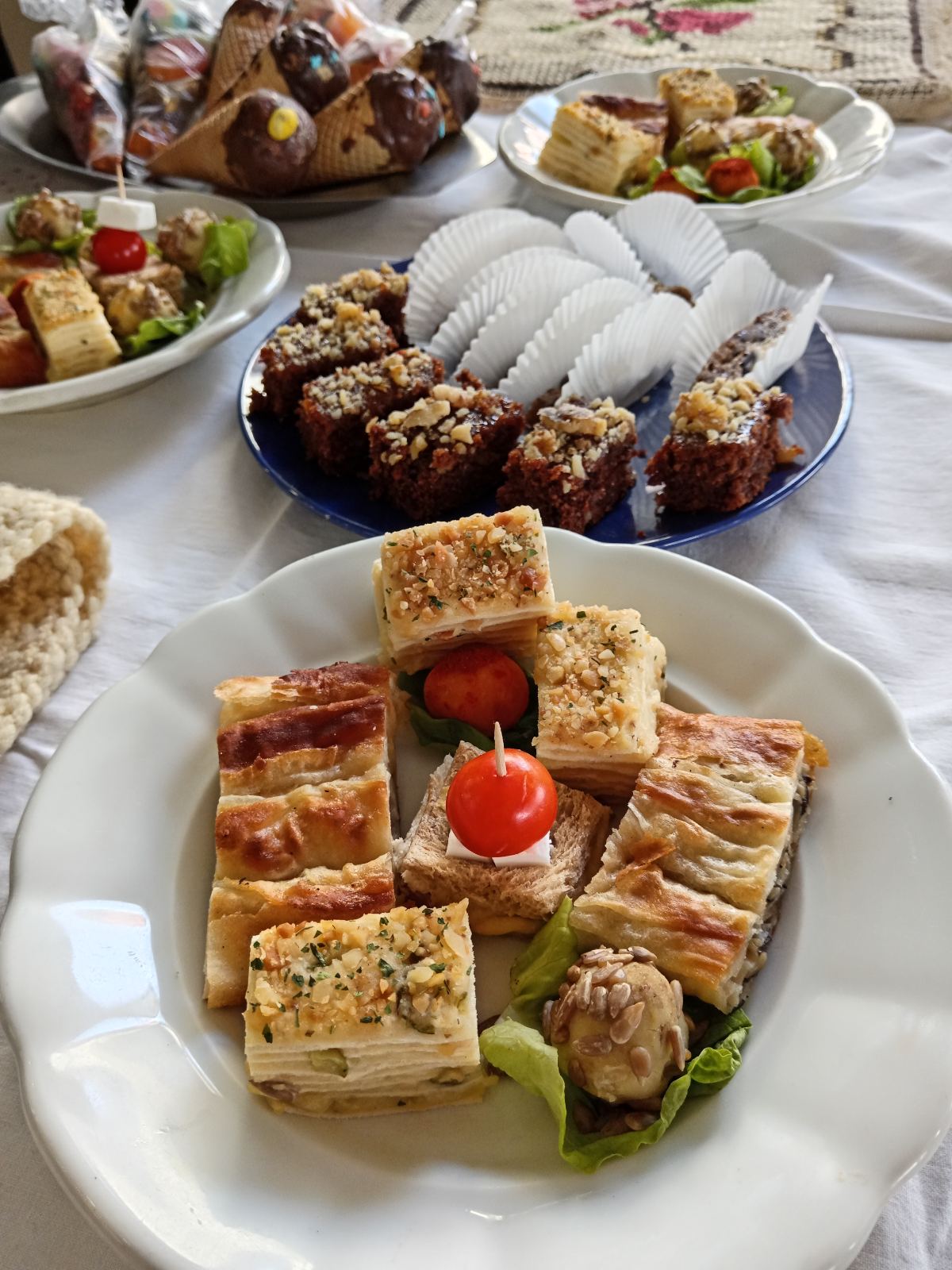 - Слаткиши, припремљени са орасима, сувим грожђем, маком, сувим воћем и чоколадом без млека, бундевом, јабукама и вишњама.