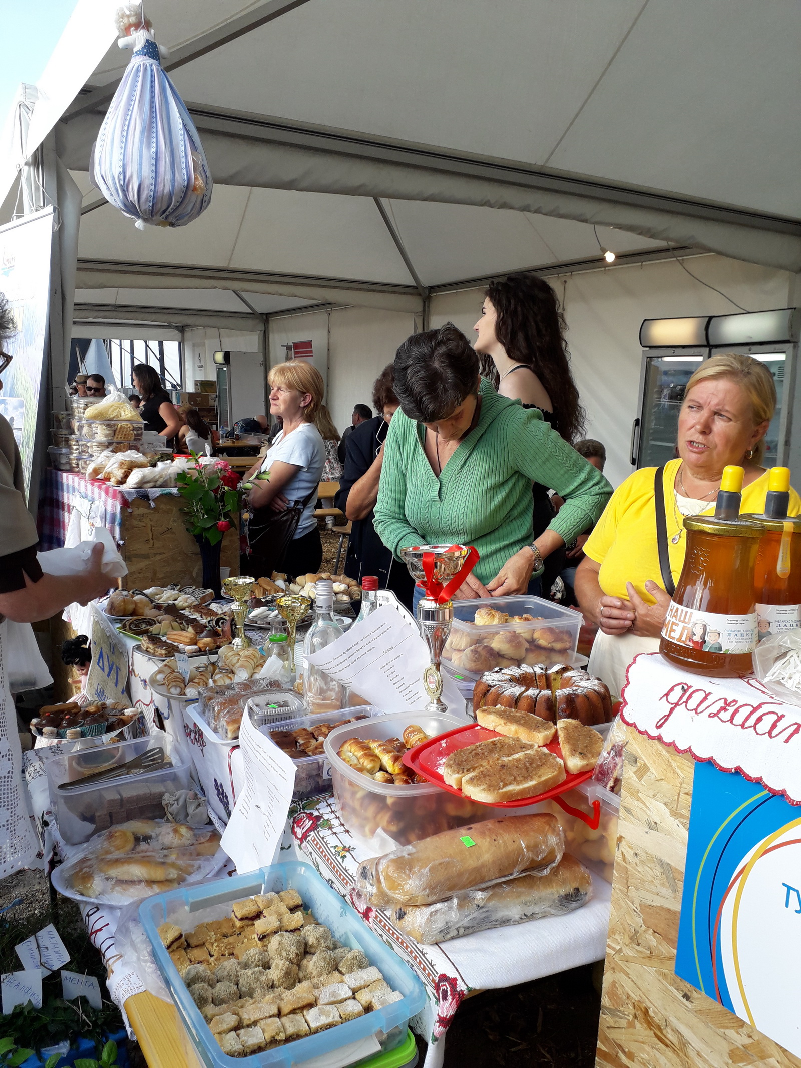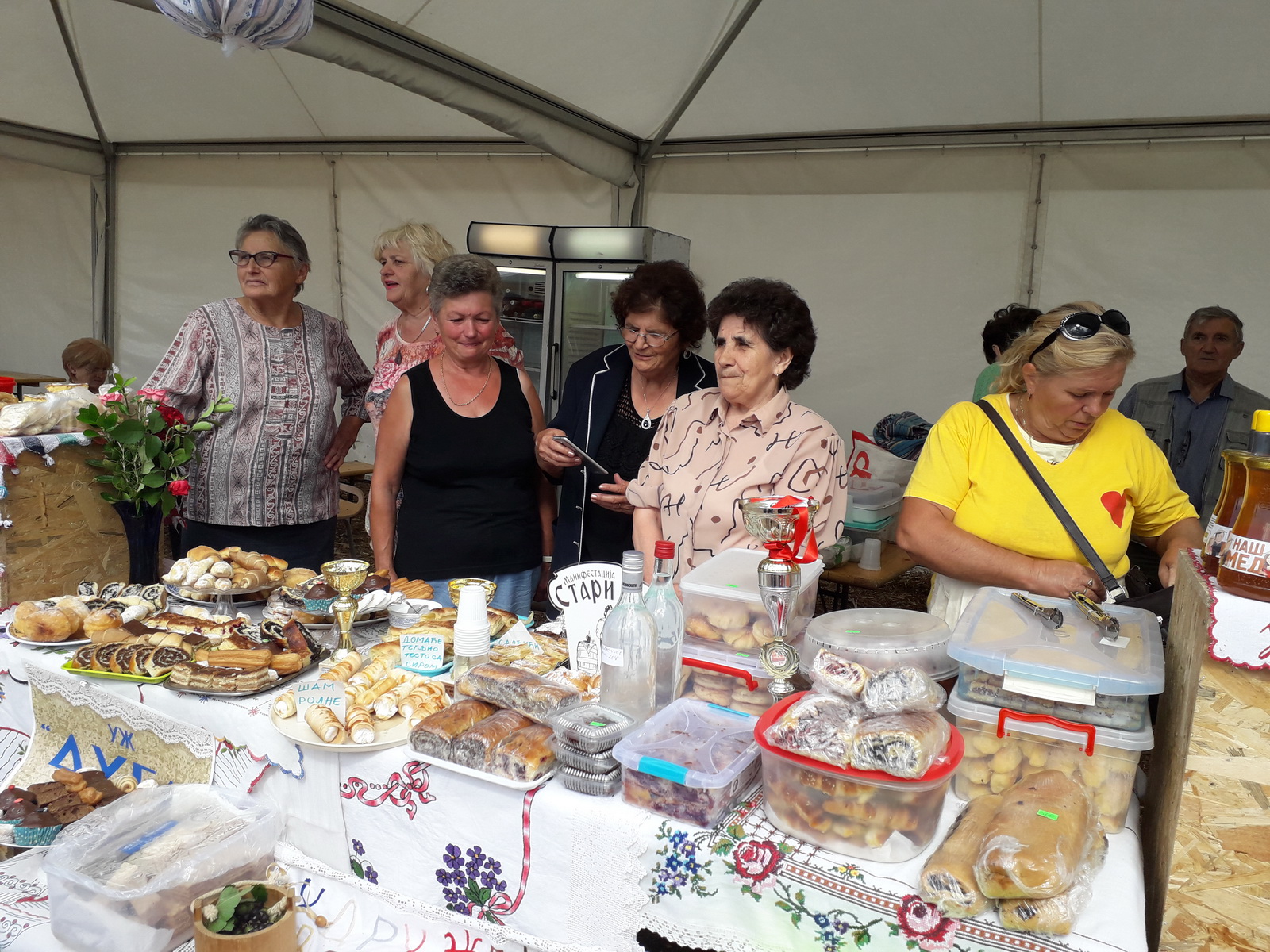 Шаренолика и разноврсна понуда наших вредних чланица поменутих удружења допринела је великој посећености нашег штанда. Највећу пажњу привукле су домаће крофне, штрудле, као и неизоставне слатке и слане кифлице.