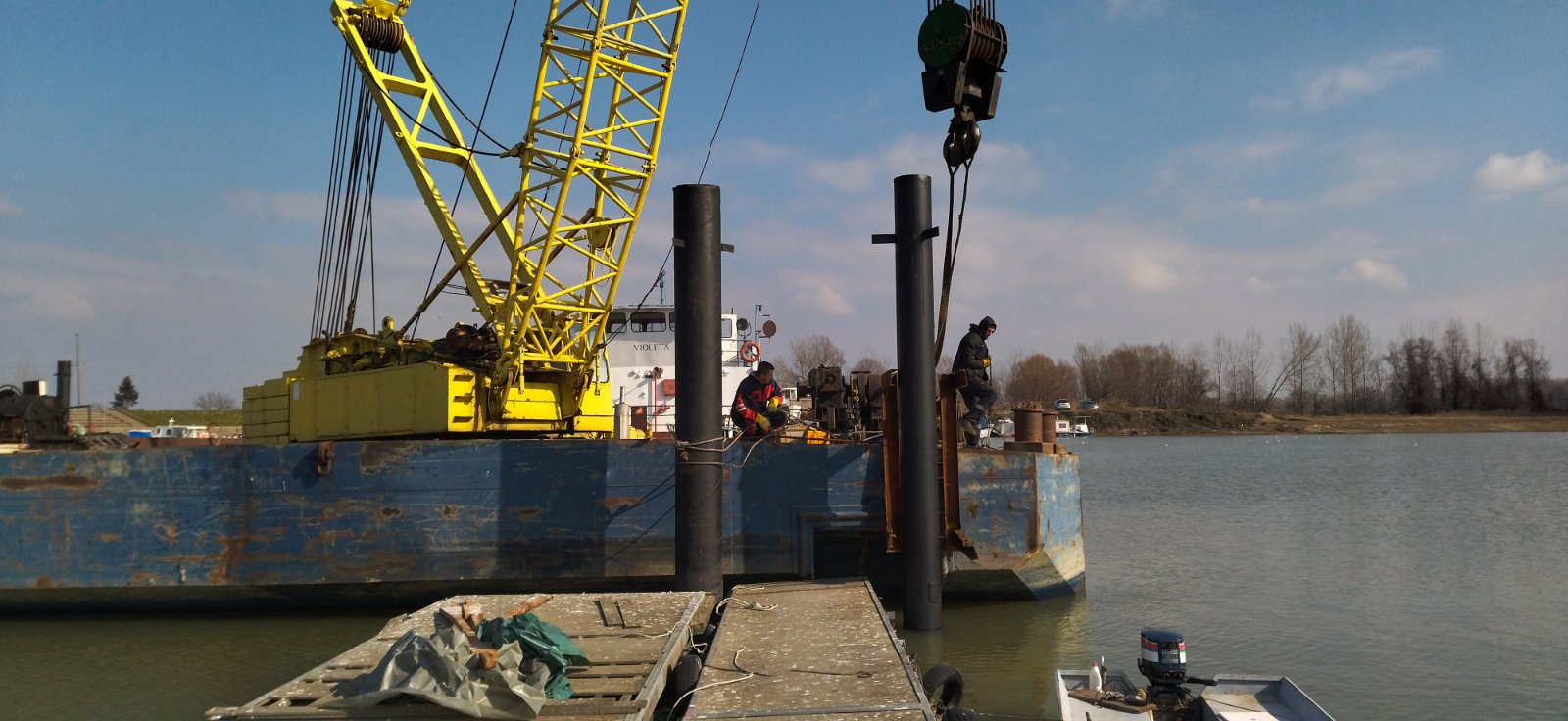 На ковинском Дунавцу, изводе се радови на побијању шипова због ојачавања постојећих понтона. Радови се према плану, приводе крају.
