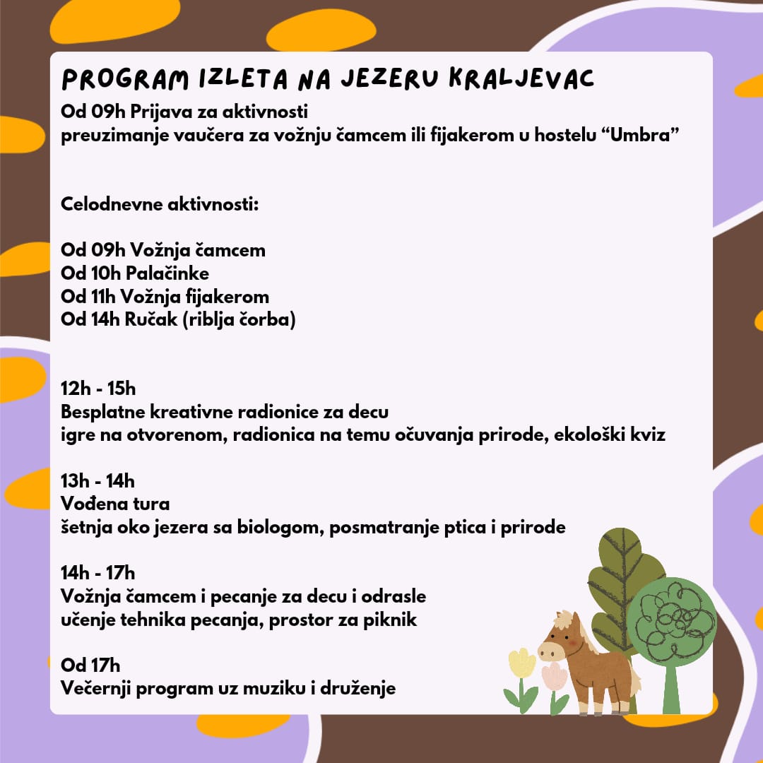 На крају предавања, Марко Маричић је по тропској температури, повео групу родитеља са децом у шетњу и потрагу за барском корњачом, обалом Делиблатског језера. Он је објашњавао које све врста птица, риба и животиња настањују СРП Краљевац, а они спремни са двогледом могли су да посматрају веома ретке птице.