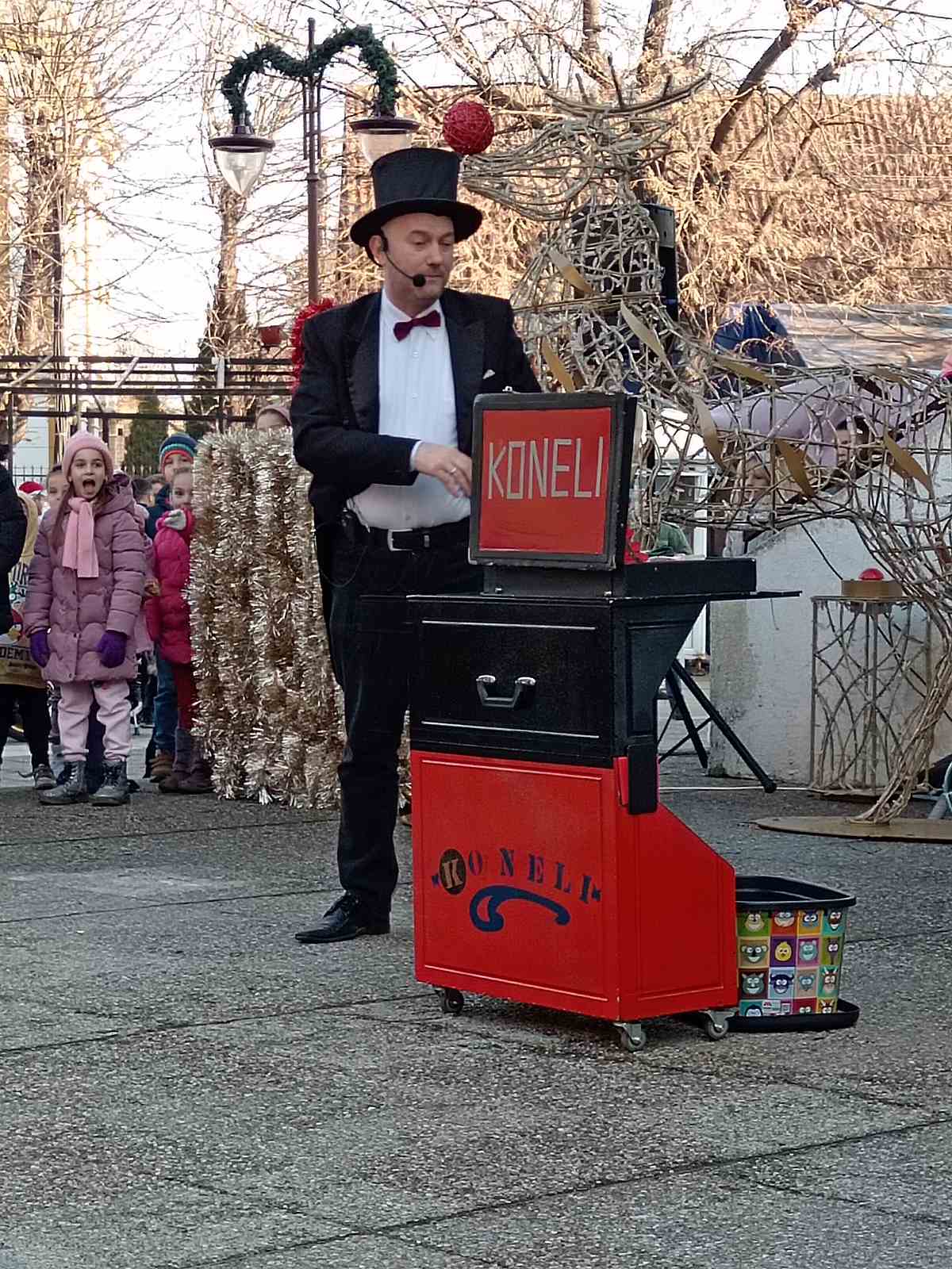 На платоу испред Центра за културу у Ковину, 28. децембра је по сунчаном дану, одржана Новогодишња чаролија. Деца су уживала уз Мажореткиње из Панчева и њихове интерактивне игре на бини, маскоте, Деда Мразеве на моторима, трикове мађионичара, представу Новогодишња чаролија, уз послужење посластицама које су припремиле чланице Удружења и Актива. Највеће изненађење најмлађих, изазвао је долазак Деда Мраза који је дошао у црвеном возићу и донео новогодишње пакетиће које је поделио деци, фотографишући се појединачно са свима. Туристичка организација општине Ковин као организатор Манифестације реализовала је поменути радосни догађај за децу у сарадњи са Центром за културу Ковин, УГ „Хумано срце“ и „Ковинка“, Црвеним крстом Ковин, ОВС Ковин, Удружењима и Активима жена из ковинске општине, Мото клуб „Маргум“ Ковин и многима који су својим Новогодишњим и Божићним декорацијама и детаљима, допринели да све буде у духу Новогодишњих празника. Манифестацију Новогодишња чаролија, отворио је Директор ТОО Ковин, Јовица Ивковић. Све је протекло у најбољем реду уз добро дечје расположење. Захваљујемо свим спонзорима и хуманим људима добре воље који су донирали финансијска средства и тиме обезбедили новогодишње пакетиће за децу.