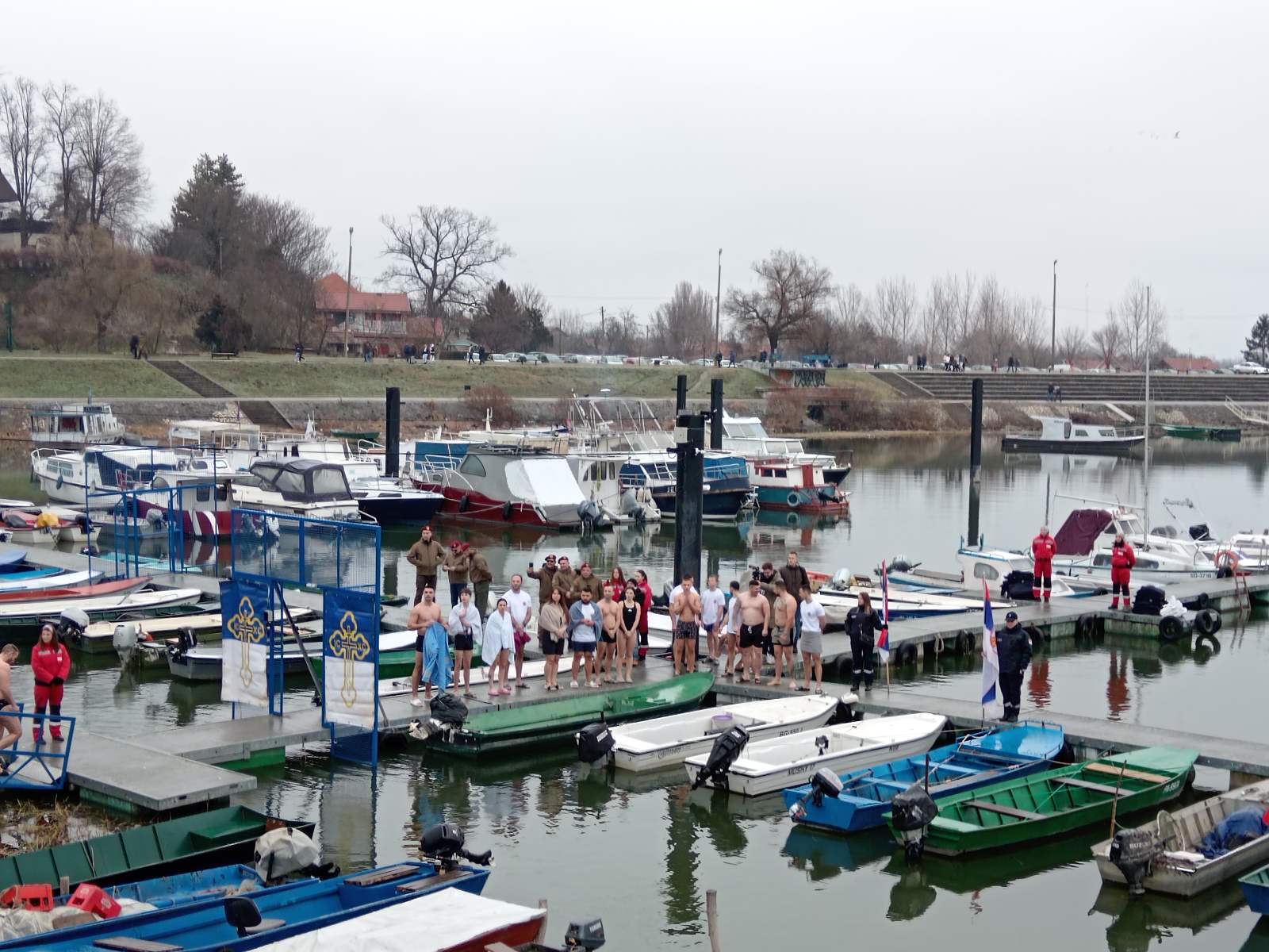 Уз звуке патриотских песама, у свечарској атмосфери, на пливању је учествовало тридесет седам пливача и десеторо који су се потопили, мушкараца и жена, међу којима је било и деце.